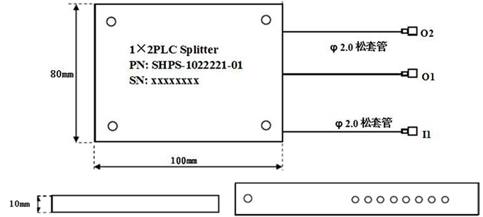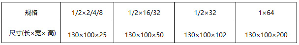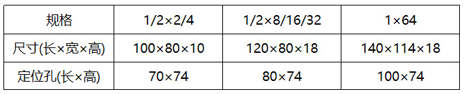 1 分 2 盒式光分路器封裝尺寸示意圖