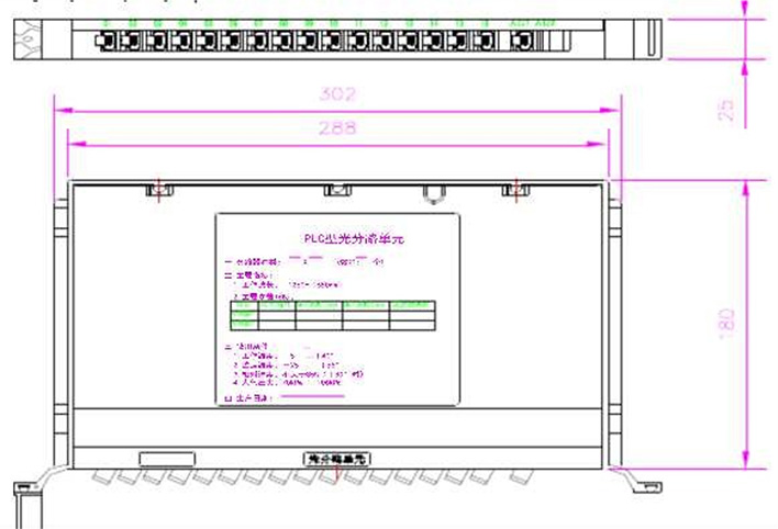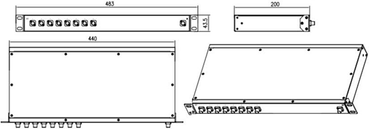 4、機(jī)架式光分路器封裝尺寸示意圖: